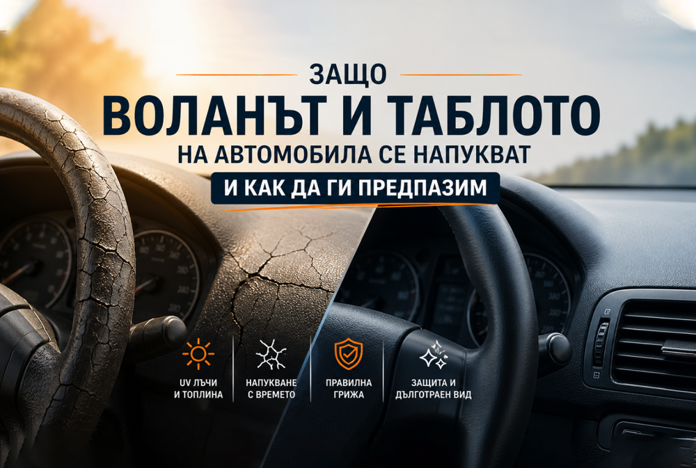 Воланът и таблото на автомобила се напукват основно вследствие на UV лъчение, високи температури и недостатъчна поддръжка. С правилна грижа, качествени защитни продукти и редовна профилактика можете да предотвратите тези повреди и да запазите интериора в отлично състояние.