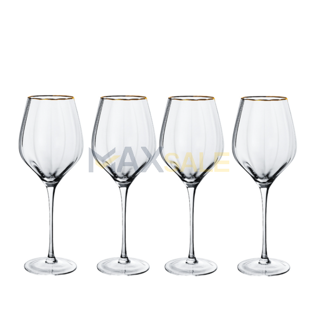 Комплект 4 чаши за вино със златист кант - 530мл, универсални